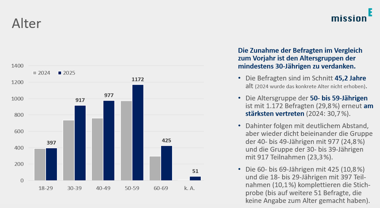 Über 3.900 Beschäftigte haben sich die Zeit genommen, an der Umfrage zum Energie- und Mobilitätsverhalten 2025 teilzunehmen – ein Zuwachs von knapp 25 % gegenüber 2024. Dafür nochmals ein herzliches Dankeschön alle, die mitgemacht haben! An strengen statistischen Kriterien gemessen sind die Umfrageergebnisse zwar nicht repräsentativ. Dennoch können sie eine gewisse Repräsentativität beanspruchen: Zum einen haben fast 4.000 Beschäftigte aller Geschlechter, Alters- und Laufbahngruppen aus allen Ressorts und der Staatskanzlei teilgenommen. Und zum anderen bestätigen die Ergebnisse aus diesem Jahr insgesamt gesehen die Befunde des Vorjahres – ein paar zentrale Ergebnisse fallen sogar noch etwas besser aus als im Jahr 2024.