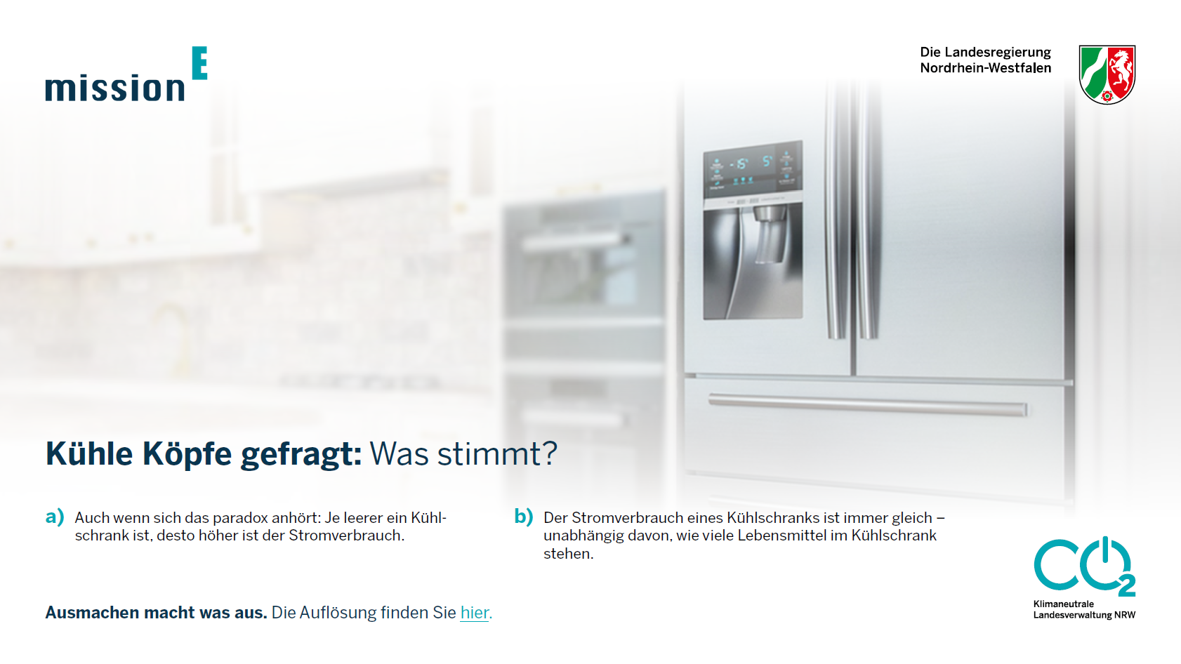 Tatsächlich bringt die Serie von 26 Energiespartipps für das Intranet den Beschäftigten das Energiesparen spielerisch und ohne erhobenen Zeigefinger näher – denn ihre Botschaft lautet nicht: „So ist es richtig, so müssen Sie es machen!“ Stattdessen sind diese Tipps interaktiv und wie ein Quiz aufgebaut: Jeder Tipp bietet zu einem bestimmten Thema zwei Aussagen, die beide – zumindest auf den ersten Blick – plausibel klingen; doch nur eine Aussage ist wirklich richtig, und die Leserinnen und Leser müssen entscheiden, welche von beiden Aussagen stimmt. Die jeweils falsche Aussage greift einen verbreiteten Irrtum oder Vorbehalt, eine Halbwahrheit oder Fehlinformation auf. Unten auf jedem Tipp findet sich ein Link zu der jeweiligen Auflösung mit kurzen Hintergrundinformationen zum Thema auf dieser Website.